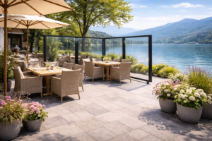 Mehr belegte Tische trotz Wind: Schaffen Sie geschützte Außenbereiche und steigern Sie Ihren Umsatz, bei jedem Wetter. Dank hochwertigem Acryl, zu einem günstigeren Preis als bei Glas.